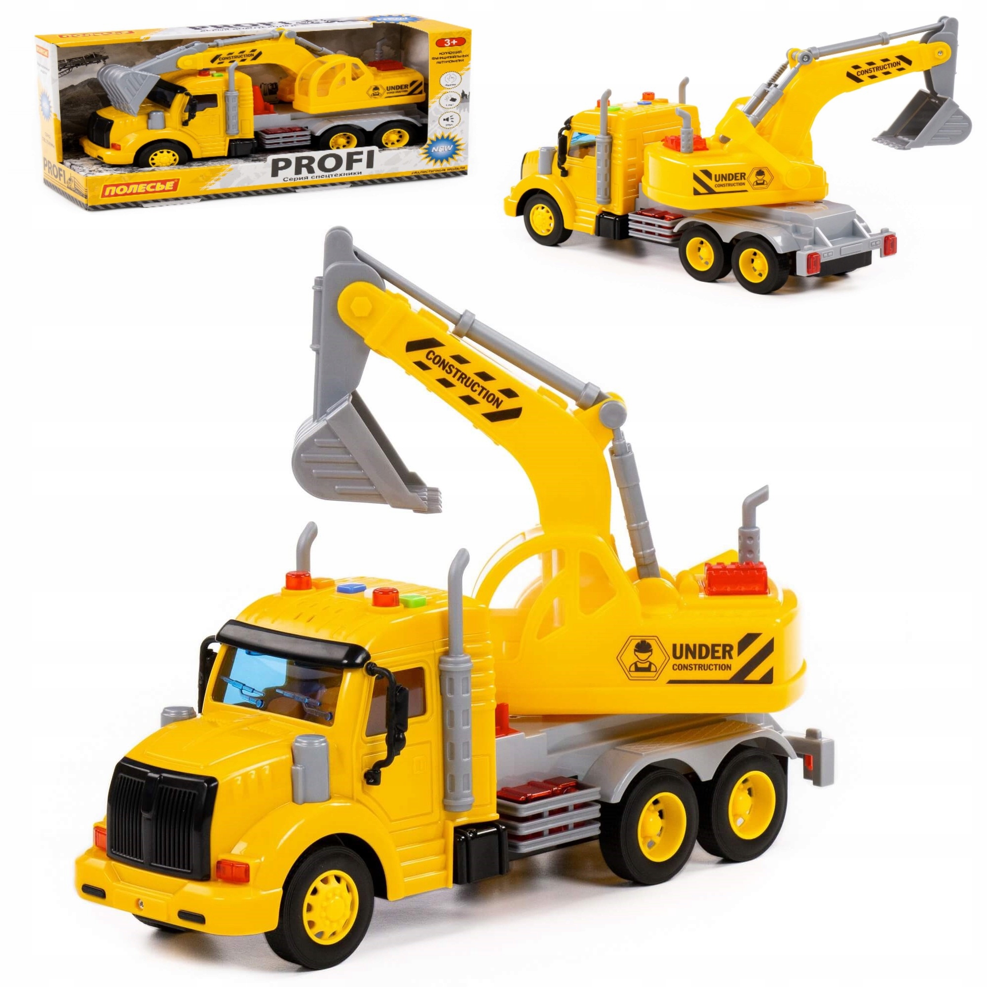 «Дивлячись на фотографії поліських іграшок серії ПРОФІ, не виникає відчуття що вони виглядають як справжні вантажівки. Насправді ці мініатюри популярних конструкторів виготовлені з матеріалів найвищої якості. Вони міцні та безпечні в експлуатації. Зроблені надзвичайно точно. Вони неодмінно принесуть багато радості нашим дітям та батькам не залишить відчуття недаремно витрачених грошей.Автомобіль оснащений має привід ФРИКЦІЙНОГОширокі колеса, з'єднані металевими осями.Їх структура не гладка,що полегшує їзду по нерівностях поверхонь. Дитина може імітувати роботу справжнього транспортного засобу. Кабіна водія засклена. Для цього використовувався пластик із товстого прозорого скла."