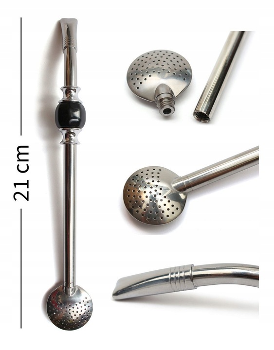 21 см Бомбіллі з ситечком з діаметром 2,8 см. Виготовлений з сталі inox. прикрашені двома охолоджуючими кільцями та червоним каменем. Бомбіллі кріпиться до пензля.