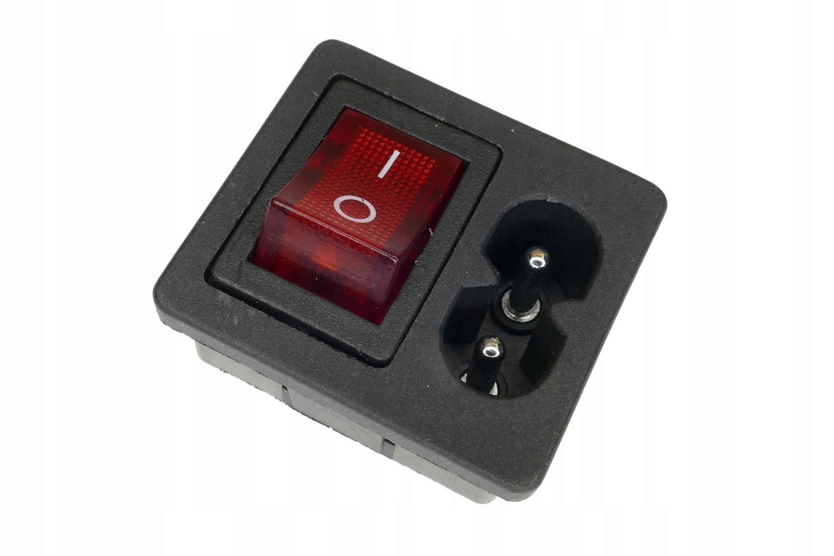 Розетка змінного струму з вимикачем з підсвічуванням. Розетка підходить для стандартних шнурів живлення у формі восьми, які використовуються в більшості електронного обладнання. Розмір монтажного отвору 28*26,5 мм. Розмір передньої панелі 31,5*28 мм. Монтажна глибина приблизно 20 мм.