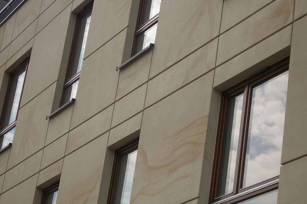 Монтаж: Поперечні профілі для рустових планок повинні бути встановлюється подібним чином, як і смуги рустифікації. У термооблицюванні слід зробити канавку, розмір якої перевищує розмір використовуваної рустируючої смуги. Потім нанесіть в паз клей для вбудовування склосітки і вставте всередину поперечний профіль. Клей повинен бути під усім елементом. Перфоровані стулки поперечного профілю та саму рустову смугу закрити зверху (внахлест) фасадною склосіткою. У випадку склорешітки зі склосіткою, наприклад, BP11 H2RS, фасадна склосітка повинна перекривати зверху склосітки (якими оснащена склосітка) та перфоровані стулки поперечного профілю. p >