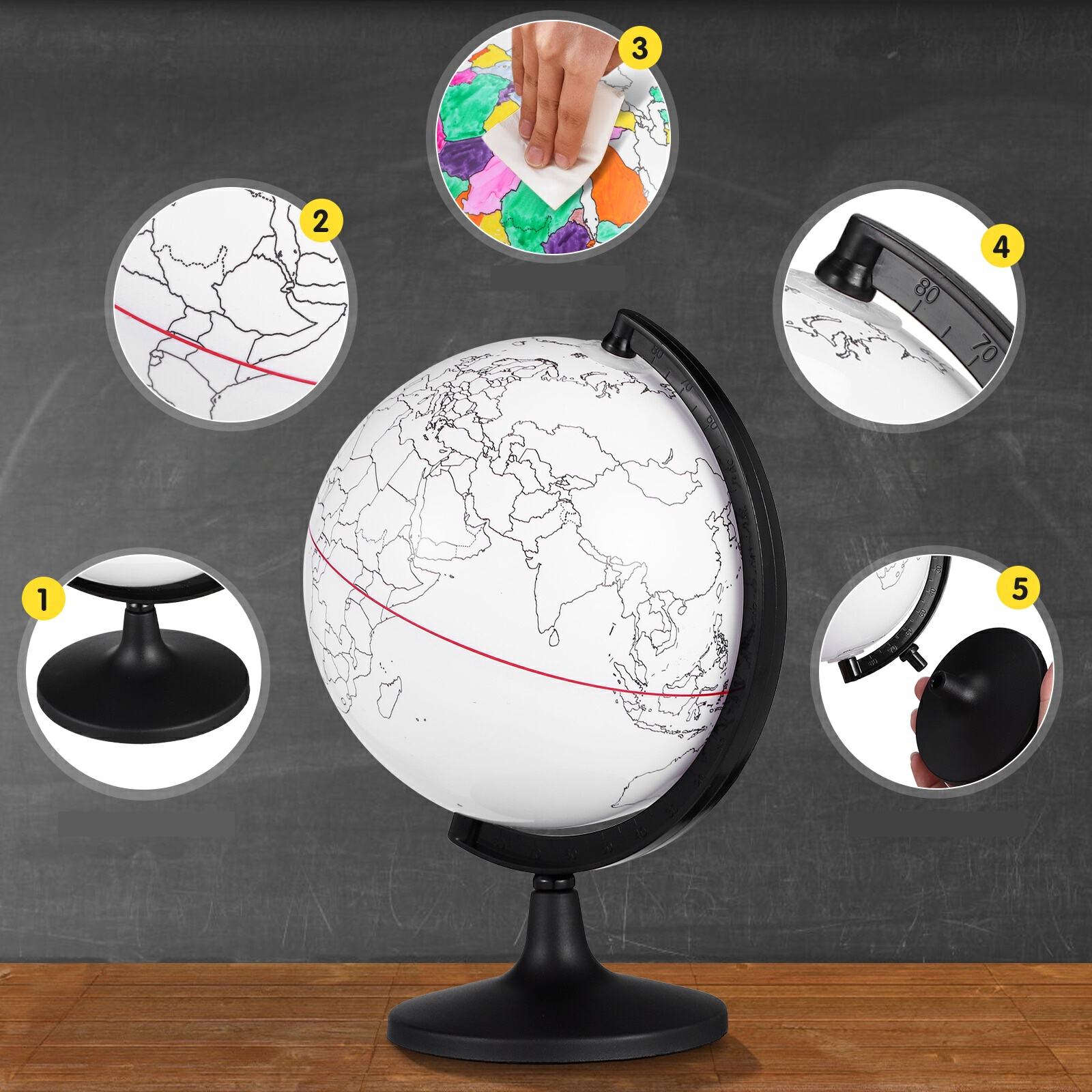 ✅ Ви можете використовувати акварельні маркери для малювання цієї порожньої моделі глобуса, зробити її декоративною та повною прикрасою земної кулі.