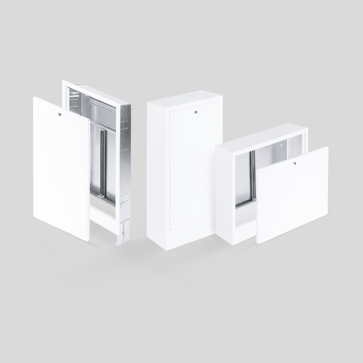 Оберіть сучасну та міцну коробку поверхневого монтажу, призначену для зручного та безпечного встановлення центрального опалення та установки опалення (підлога) та сан. Наші шафи поєднують довговічність, естетику та точність виготовлення, ідеально адаптуючись до ваших потреб!