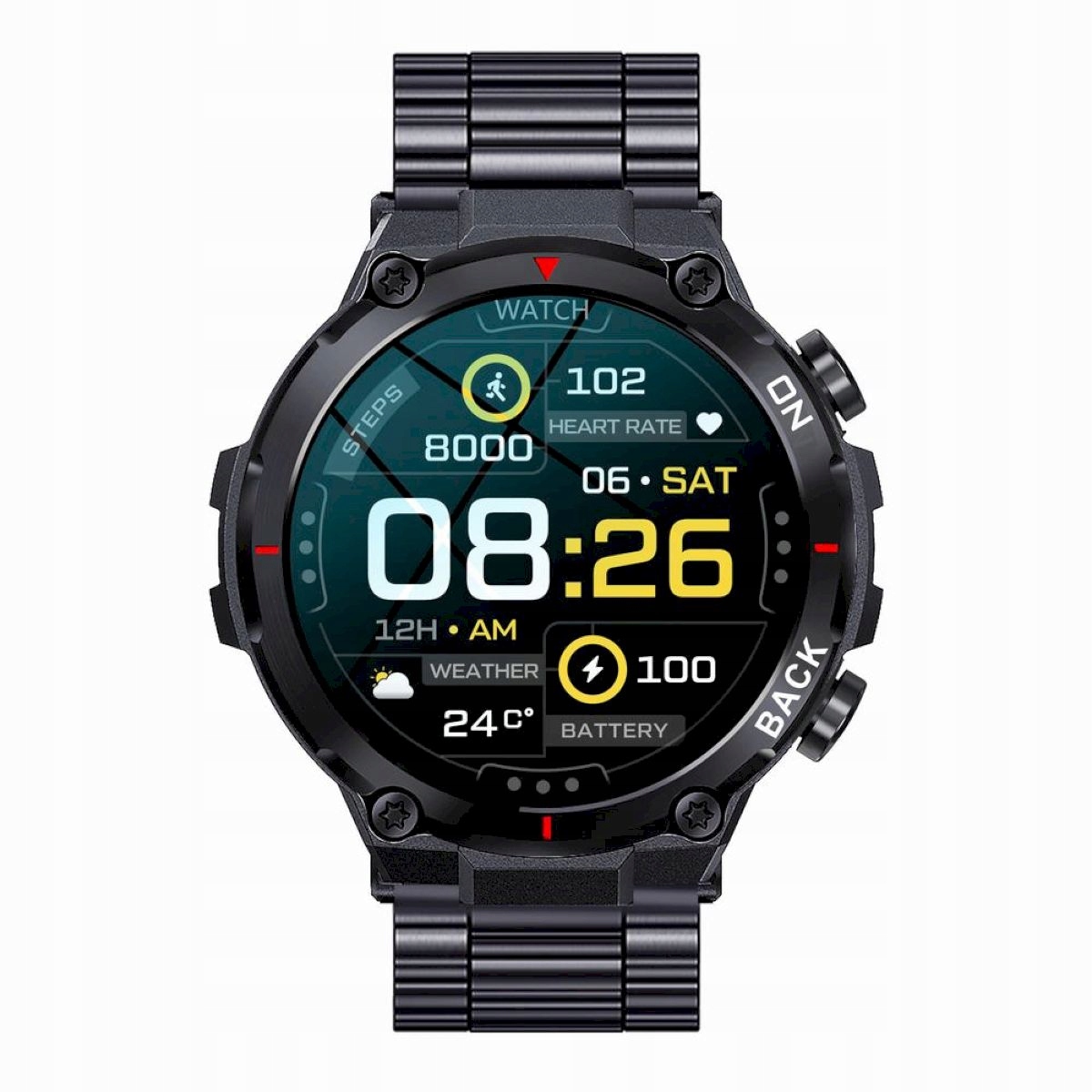 Чорний чоловічий розумний годинник на браслеті з GPS і сповіщеннями смартфона, з моніторингом активності та кроківі вимірюванням пульсу b >, артеріальний тиск і оксигенація. Ідеально підходить для тих, хто хоче мати під рукою найкорисніші функції – буквально! Оскільки операція здійснюється через сенсорний екран. Просте у використанні, інтуїтивно зрозуміле програмне забезпечення, а також меню та додаток польською мовою. Розумний годинник Gravity GT8 виглядає чудово завдяки круглому корпусу та масивній конструкції.
