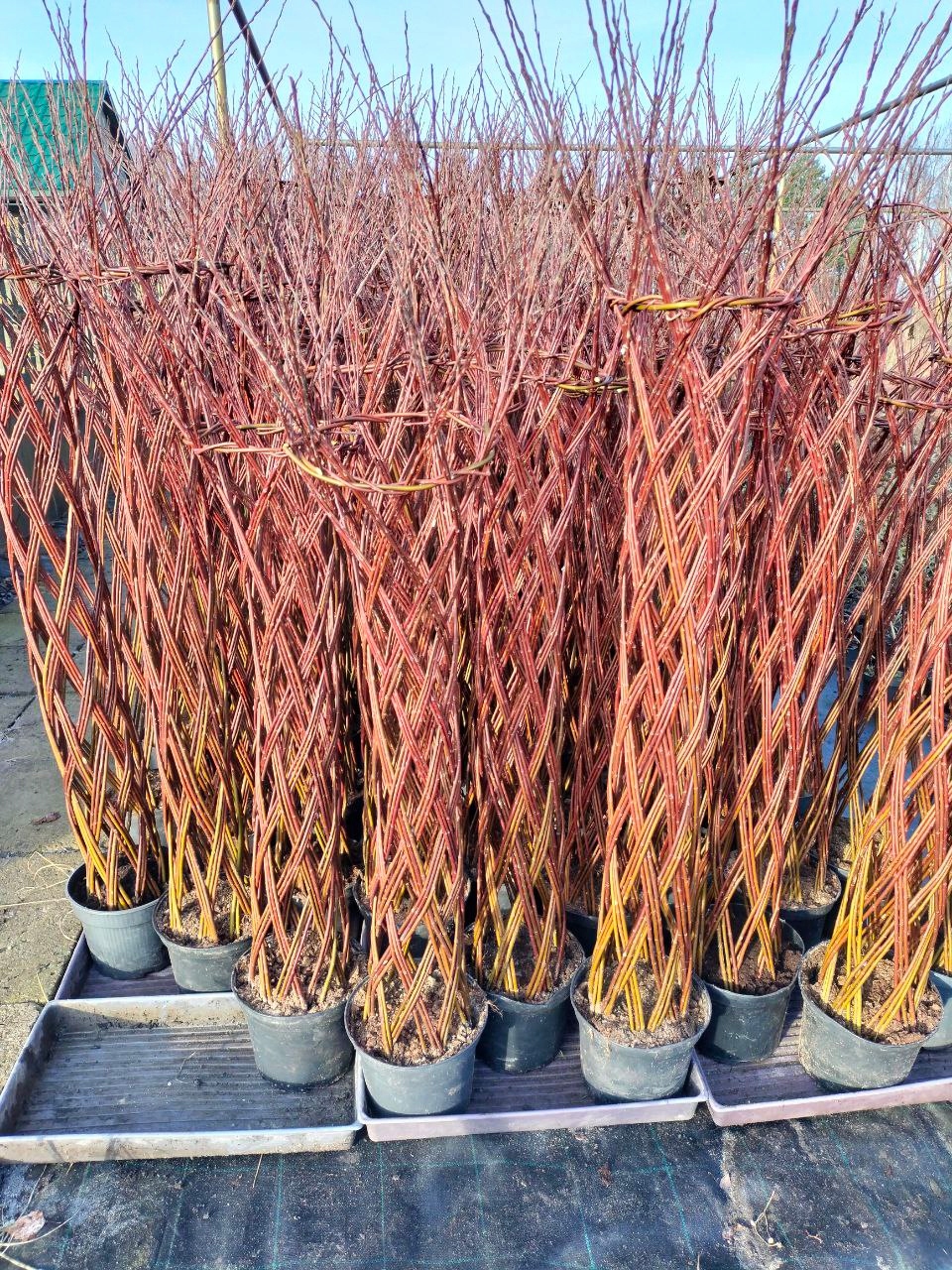 плетена верба утворюється взимку, коли пагони щойно вирізані. У цей час вони гнучкі, що дозволяє вільно використовувати їх у декоративних косах. Дерева утворюються шляхом розміщення пагонів у горщику: