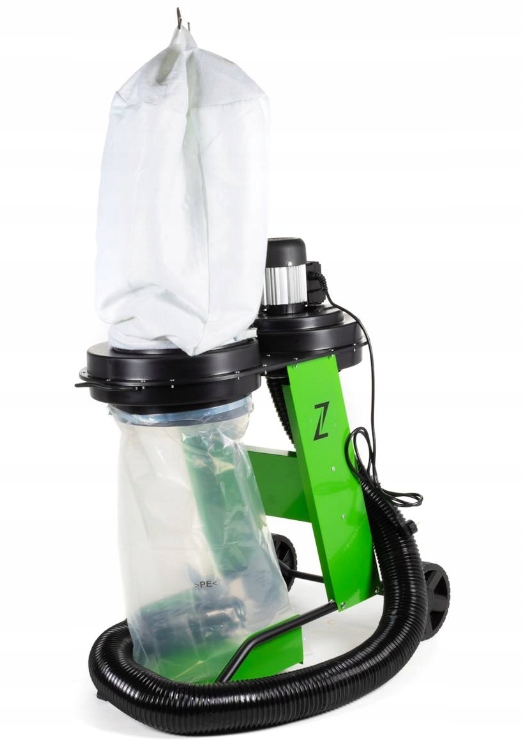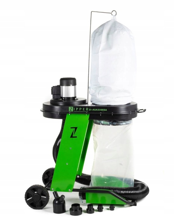 Потужний відсмоктувач тирси 1150 м3 / годза допомогою Zipper ZI-ASA550ESA з автоматичним перемикачем і ефективним двигуном 550 Вт для використання переважно в аматорських столярних майстернях, майстернях і школах. Також підходить для DIY.
