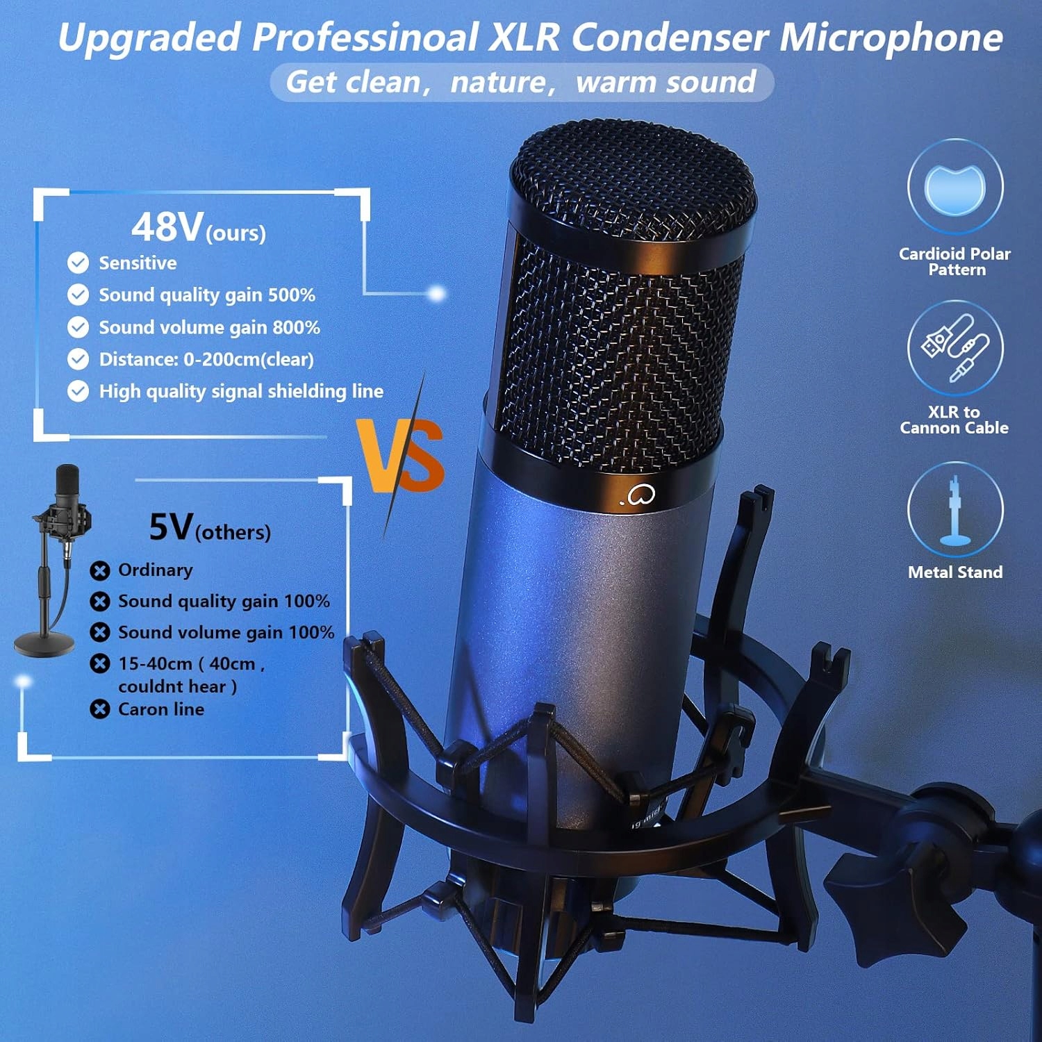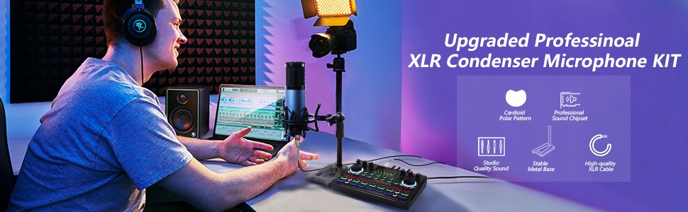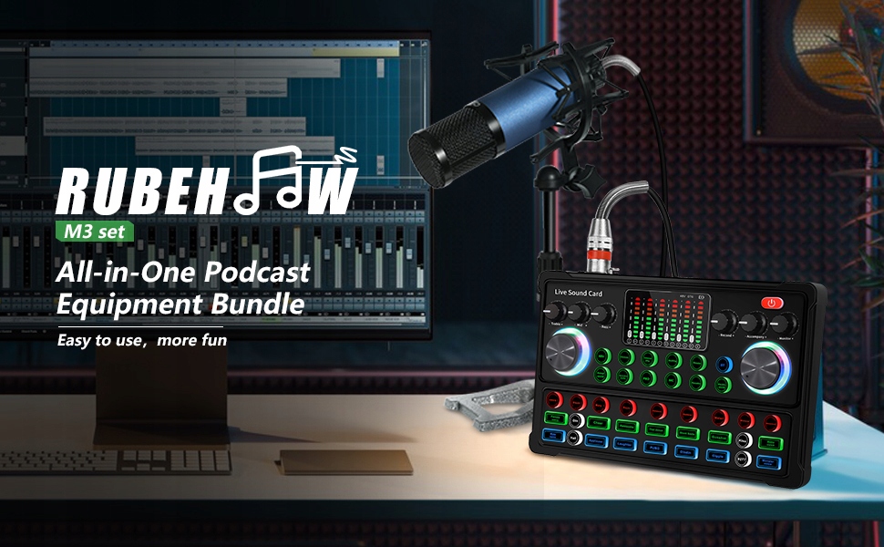 Rubehowow Набір ємнісного мікрофона для передачі потокового потоку з змішувачем DJ, все в одній звуковій дошці аудіоінтерфейсу з мікрофоном Studio Condenser для прямого потокового потоку
