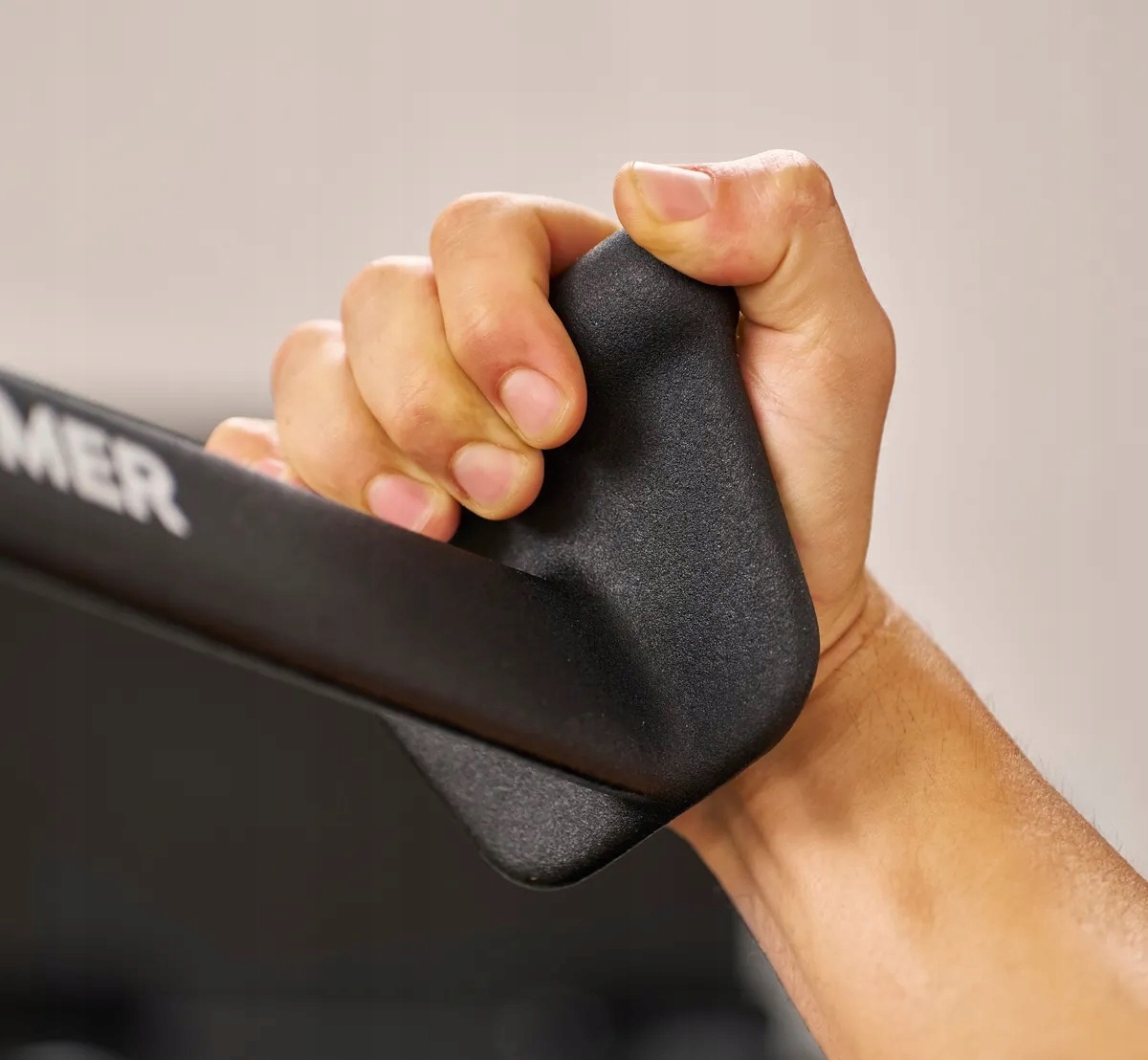 Гаммер широкого руляного руля - широкий, чавунний весля та власник тренувань на спині. Анти -слиз, ергономічний, вага 4 кг, підходить до більшості навчальних станцій.
