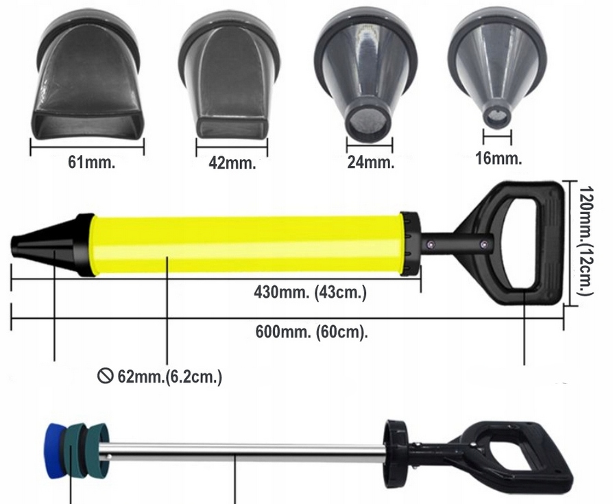 - Трубка також може бути завантажена розчином у зворотному порядку, накручуючи насадку, а міномет завантажується з сторони поршня.