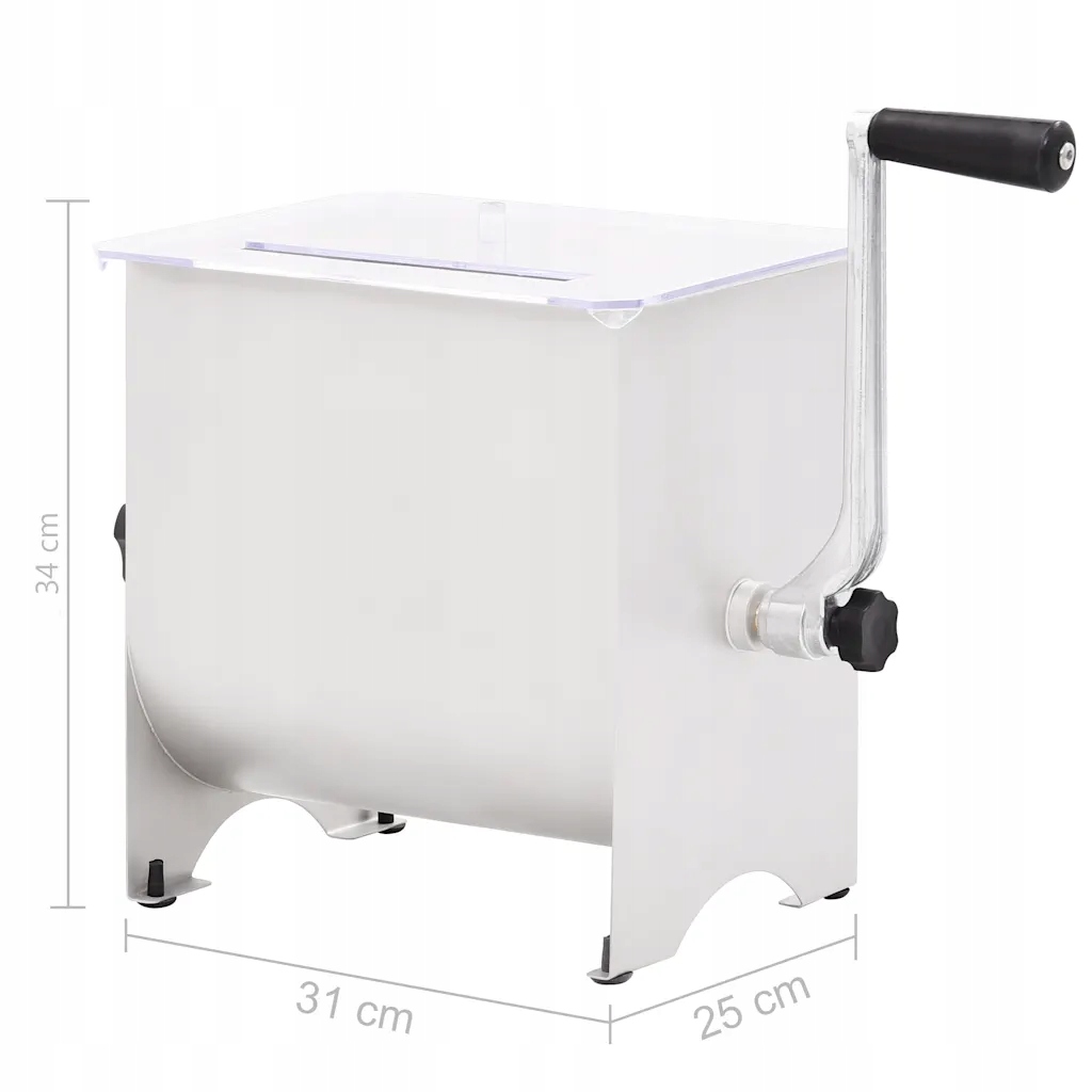 Цей ефективний змішувач буде втримати 5 кг м'яса і оснащений валиком з 4 лопатями , які ефективно змішують м'ясо, забезпечуючи рівномірне розподіл спецій. Завдяки великій ручці з кривошипами та прозорого пластикового покриву ви можете безпечно спостерігати за процесом змішування, зберігаючи руки в чистоті.
