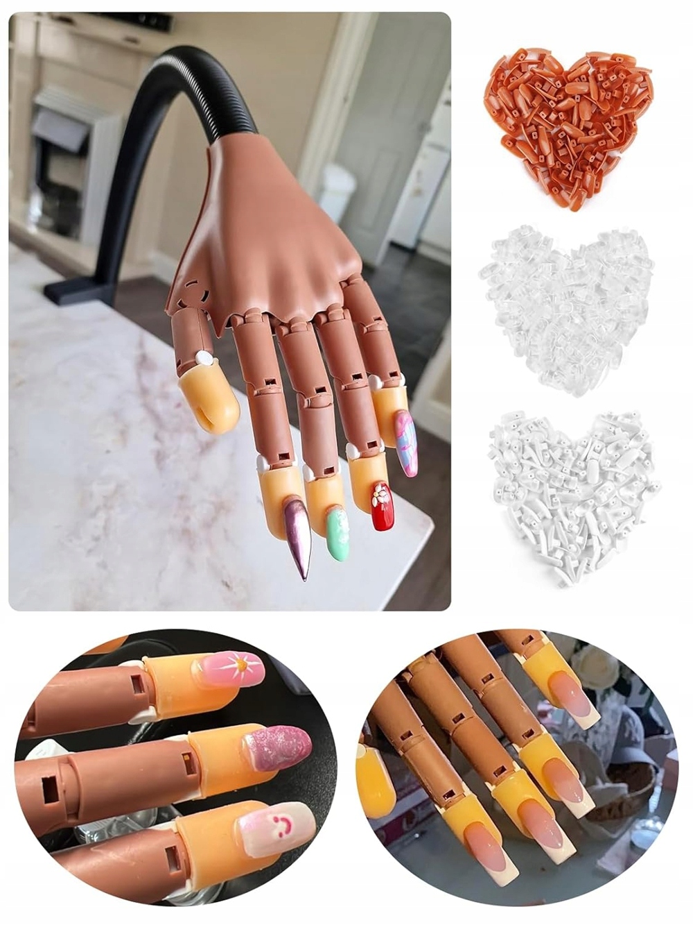наконечник нігтя штучної руки для початківців не зламається і не падає, і ви можете її вправляти багато разів. Рука вправ обладнана близько 300 взаємозамінних порад, що дозволяє спробувати різноманітні прикраси під час фізичних вправ, і кожен візерунок може бути ідеально представлений на моделі.