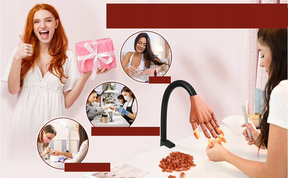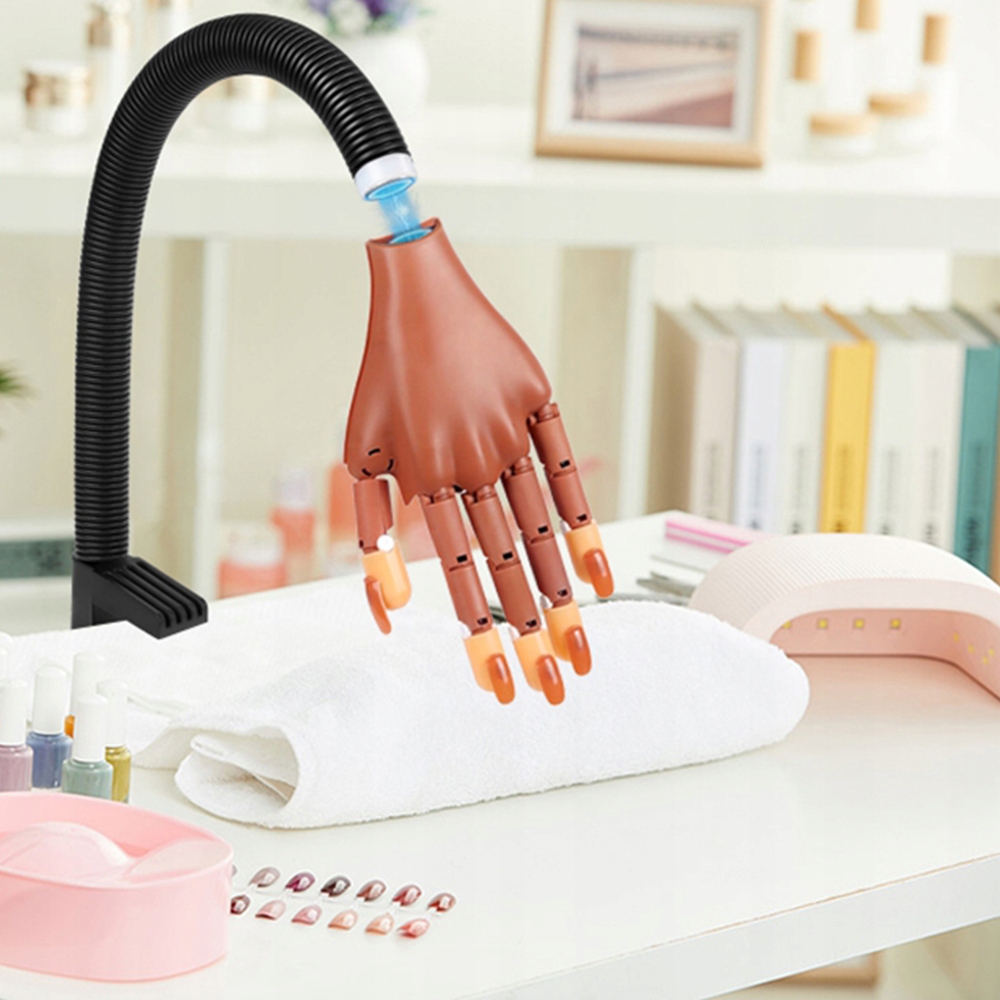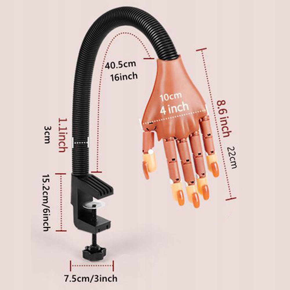 Навчальна рука до салонної підставки може бути прикріплена на столі, дошці експозиції або дерев’яної дошки. Підставка може бути розширена на певну довжину і гнучко пристосована до різних положень та кутів. Кожен ставок може бути вільно згинальним, що зручно для практики різних форм нігтів та методів декорування, забезпечуючи більш розслабляючий досвід під час манікюрних вправ.