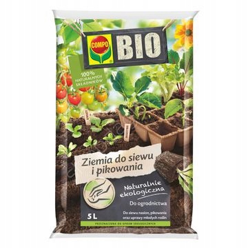 Субстрат Compo BIO спеціально підготовлений для посіву насіння, розсади та вирощування молодих рослин. Високий вміст гумусу робить ґрунт більш родючим, а рослини ростуть здоровими. Додавання гуано забезпечує цінні поживні речовини, а початкової дози органічних добрив вистачає на 2-5 тижнів після посадки. Всі органічні компоненти підвищують біологічну активність мікроорганізмів, що позитивно впливає на грунт і правильний розвиток рослин. Структура субстрату створює ідеальні умови для розвитку кореневої системи насіння і молодих саджанців. pH 5,0-7,0. Упаковка: 5л