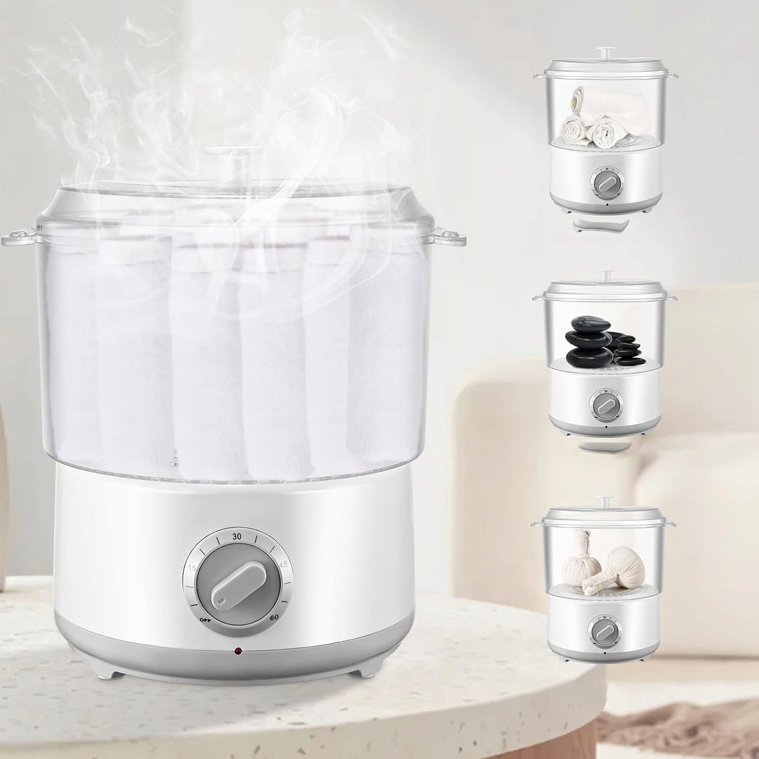 ✅【Швидке нагрівання】:рушникосушка використовує високоякісні та ефективні нагрівальні елементи, і пара може бути швидко вивільняється шляхом нагрівання рушників до 202°F за 5-10 хвилин. Він може розігрівати масажні камені (стандартний час: 5 хвилин), ароматерапевтичні мішечки (5-8 хвилин) і гарячі рушники (в рушникотримач вміщується 4-6 маленьких рушників або 3-4 середніх).