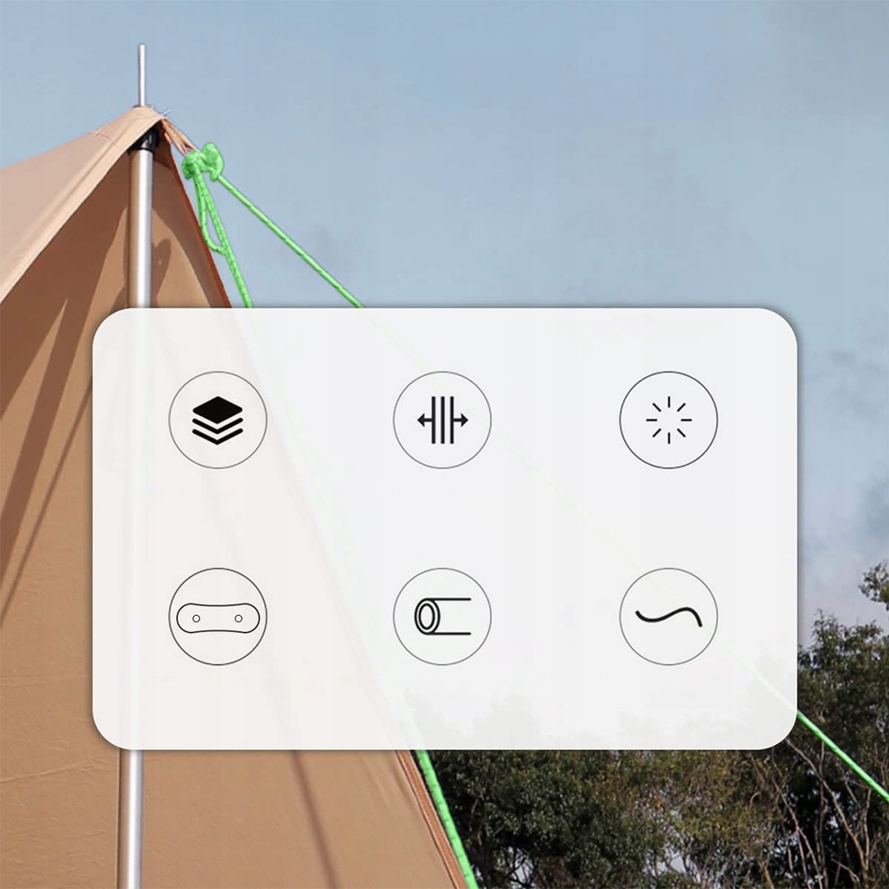 розмір: кожна мотузка довжиною 4 метри і діаметром 4 мм. Кожна мотузка може тримати до 200 кг. У наборі 10 наметних ліній