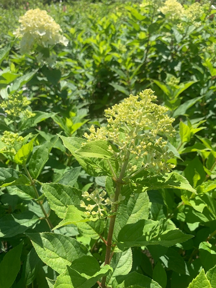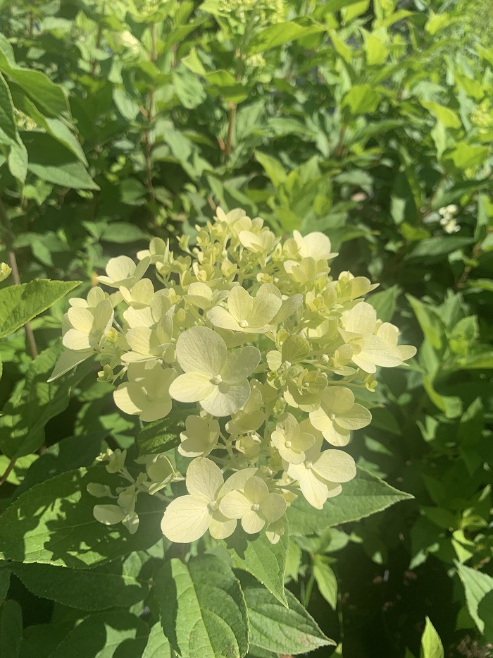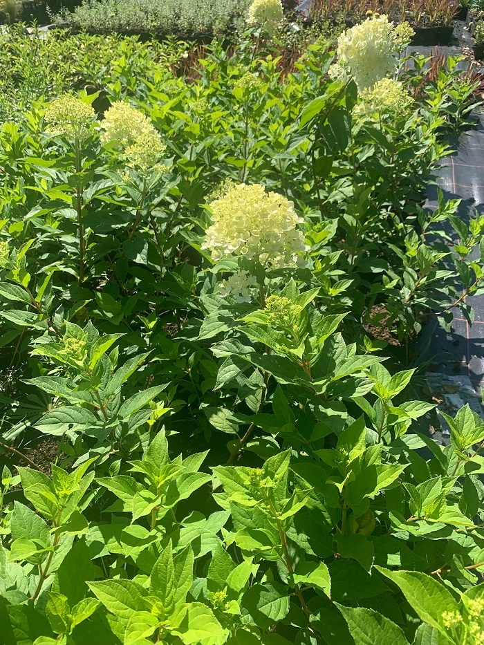 Hydrangea Bouquet Limelight - одна з найцікавіших сортів гортензії. На початку його великі конічні суцвіття завдовжки до 30 см, мають вапно і лимон, пізніше кремові білі, і коли вони зів’яли в кінці літа, вони стають трохи рожевими.