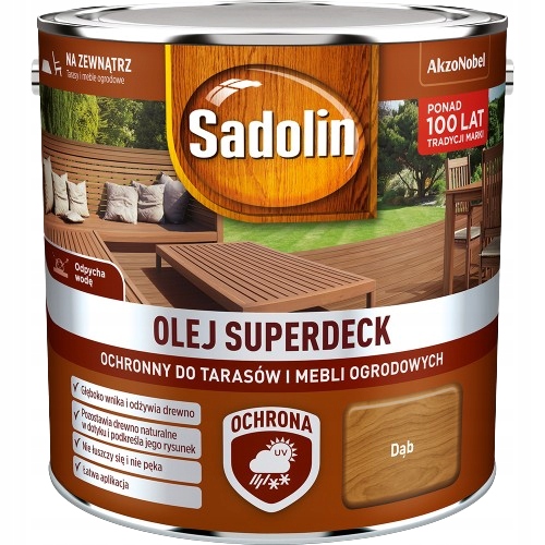 - олія супердека Садоліна для меблів та терас - це сучасне масло з високим вмістом смоли, призначеним для обслуговування та прикраси дерев’яних терас та садових меблів, а також інших дерев’яних поверхонь зовні.