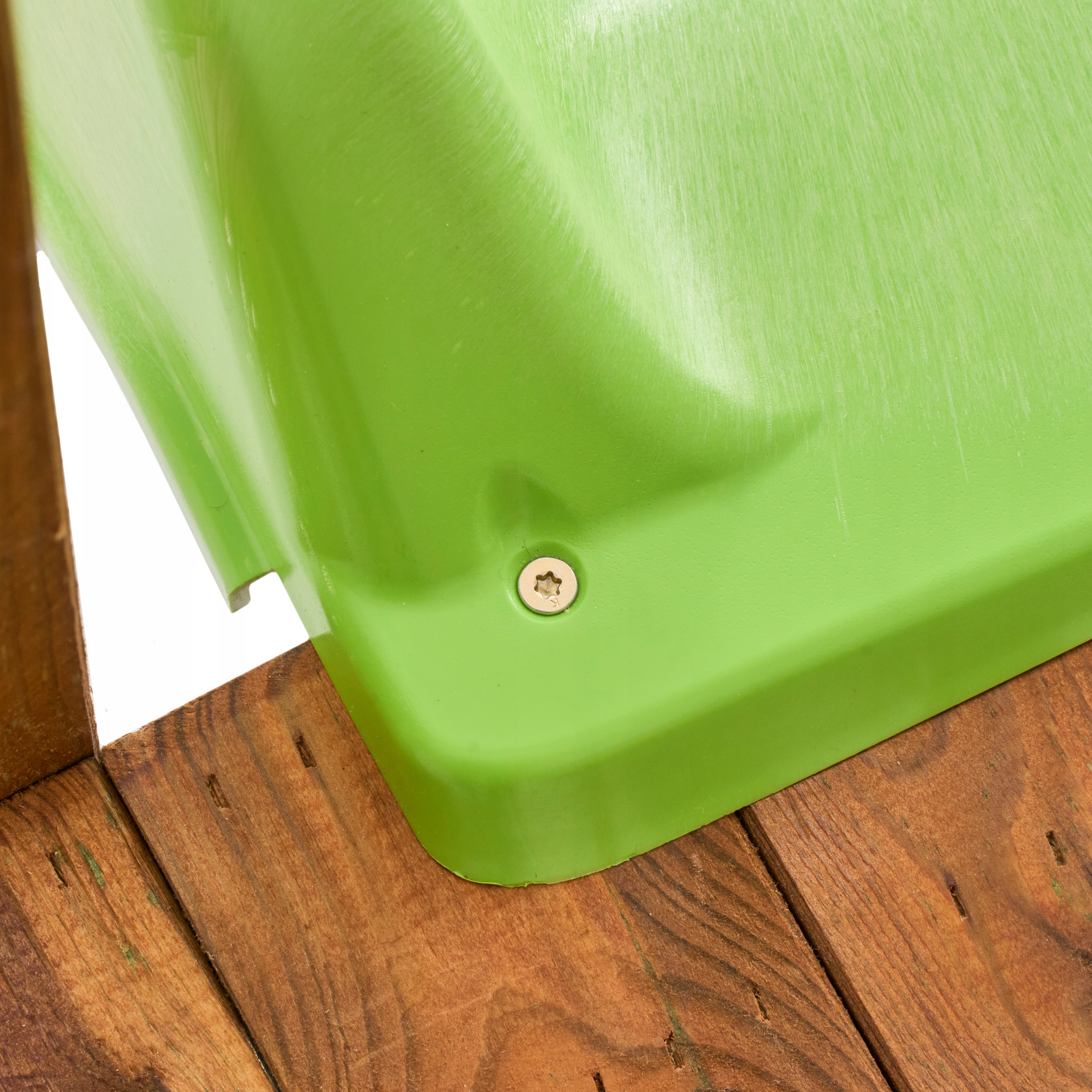 Гра на дитячому майданчику повинна бути, перш за все, безпечною для дітей. Основа не має гострих елементів - всі краї закруглені. Ризик отримання травм зведений до мінімуму. Висока стійкість до погодних умов забезпечує тривале і безпроблемне використання. Гірка виготовлена методом ін’єкції з матеріалу HDPE, який, окрім стійкості до води та ультрафіолетового випромінювання, є дуже стійким до механічних пошкоджень.