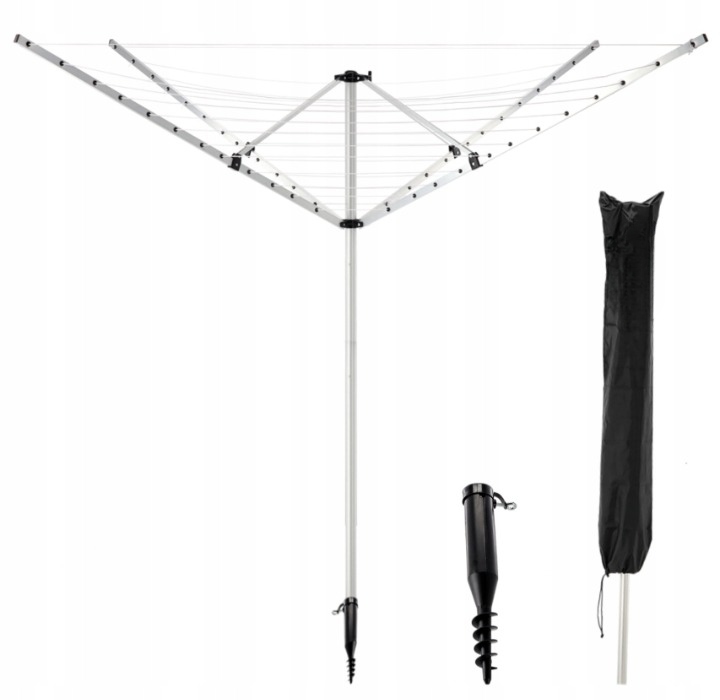 за потребою відрегулюйте його висоту. Він дуже швидко складається і однаково простий у складанні.Садова сушарка - це зручність для всіх, хто має будинок з садом або садом перед квартирою. 4-сімкова садова сушарка гарантує загалом 50 метрів кабелю, тобто поверхню для сушіння.