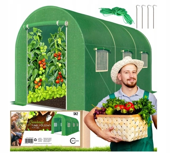 Садовий тунель з плівки, забезпечує оптимальний захист посівів, подовжує період плодоношення та дозволяє підвищити ефективність збору врожаю. Каркас виготовлений із сталевих профілів, оцинкованих з двох сторін. Монтаж за допомогою шурупів забезпечує стійкість і довговічність конструкції. Прозора багатошарова поліетиленова плівка 140г/м2. Вікна, що зачиняються, з москітними сітками забезпечують доступ свіжого повітря та контролюють рівень вологості. Тунель обладнаний широкими, відкатними дверима з замком. Оптимальна висота теплиці (200 см) дозволяє вільно пересуватися і працювати.