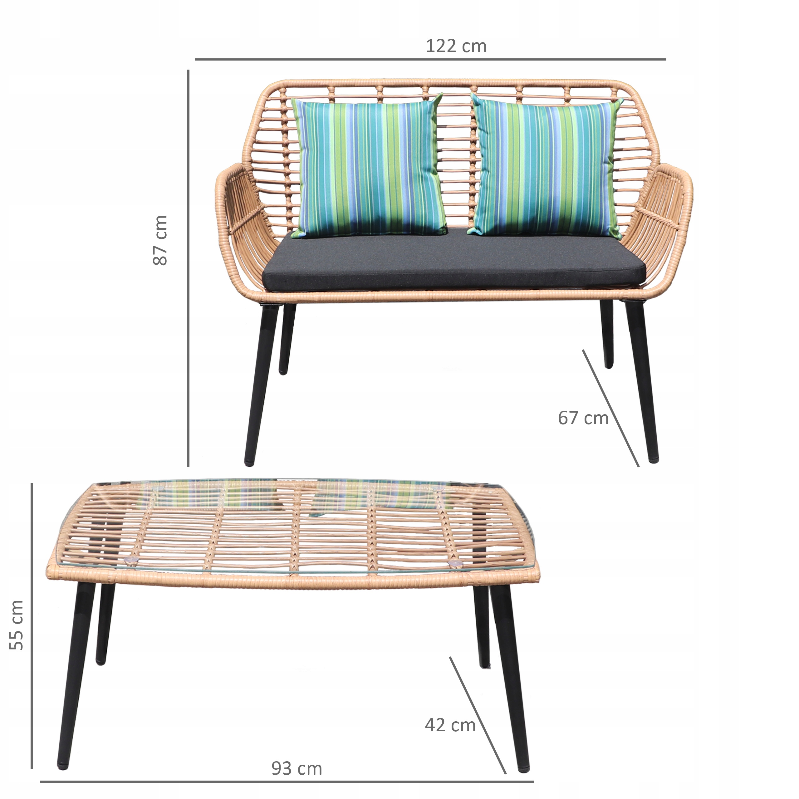 Садові меблі з ротанга, ДИВАНИЙ СТІЛ, 2 СТІЛЦЯ