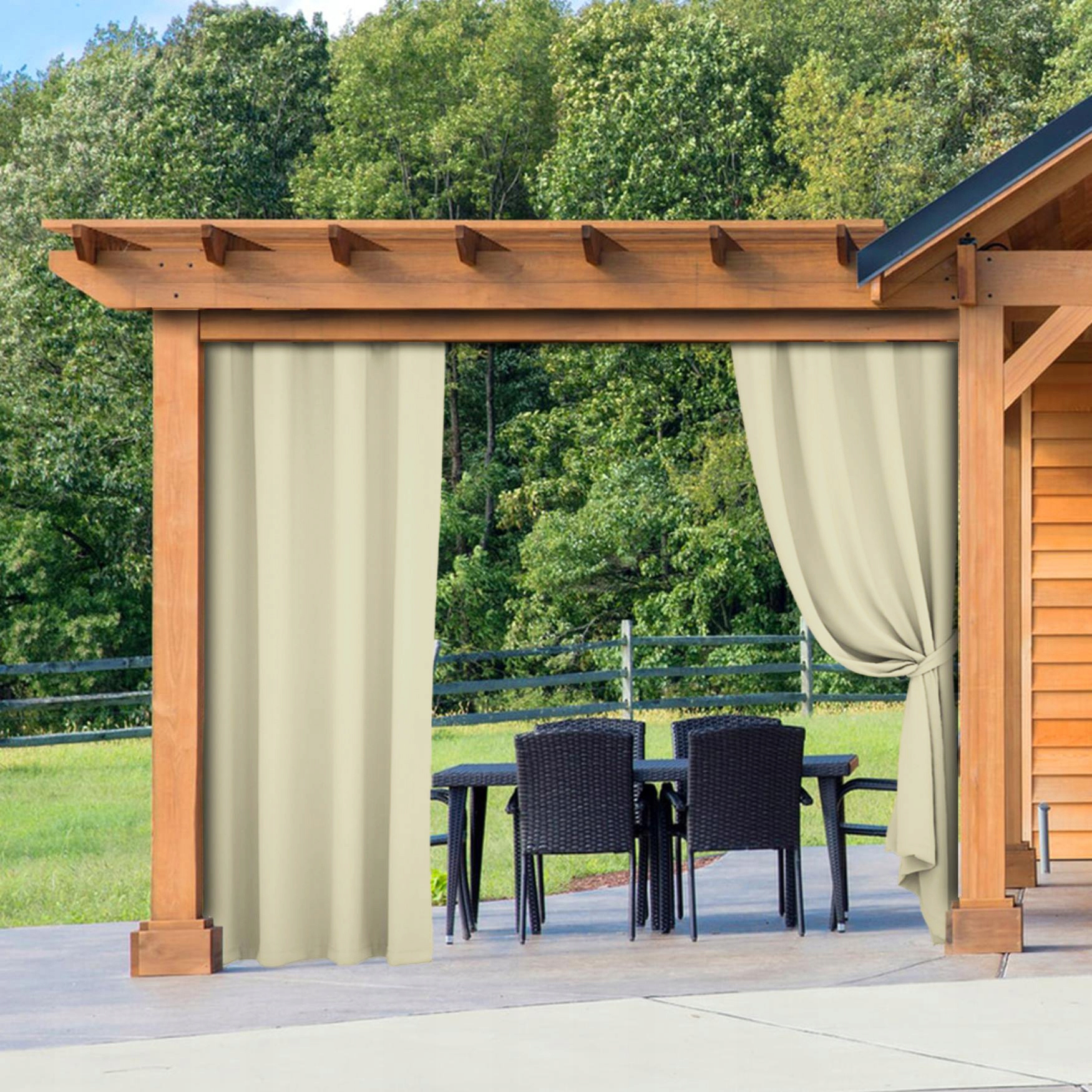 4➡ Садові штори мають естетичну, декоративну функцію , але перш за все практичні . Вони сприятимуть розслабленню на відкритому повітрі, покриваючи від вітру, дощу або занадто інтенсивне сонячне світло. також забезпечить адекватну близькість (можливість легкого покриття від сусідів або перехожих -).