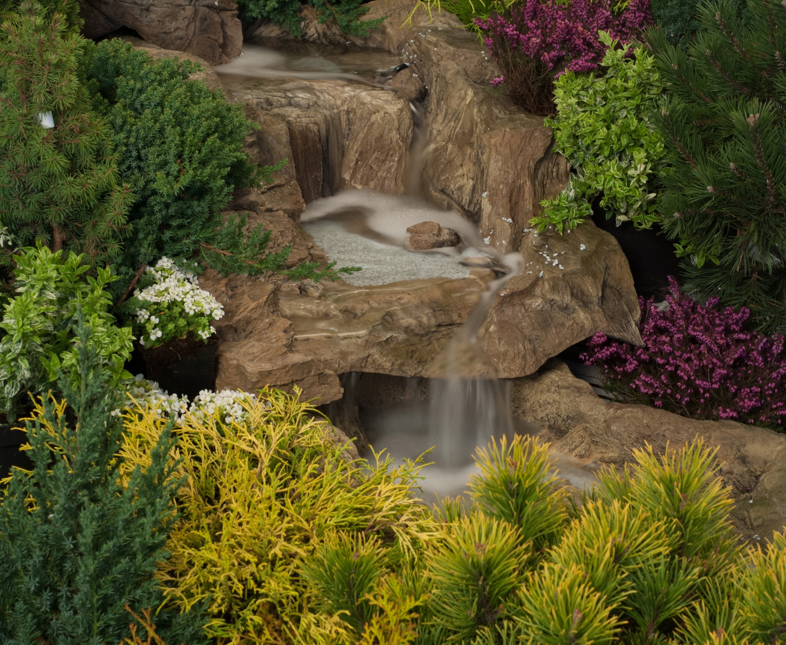 100% відображає природний гірський потік. Усі кольори каскаду, які видно на фотографіях, натуральні, не піддаються корозії, не вицвітають і не знебарвлюються. Каскад простий в установці, що дозволить вам швидко перетворити свій сад на прекрасну гірську атмосферу.