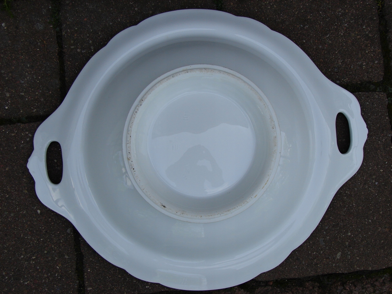 Без назви предмет без підпису, ймовірно, виріб якогось німецьких порцелянових заводів 2-ої половини 19 ст. >На предметі є скол, не на краю верхнього краю, який не травмує. Дефект показано червоною стрілкою при великому збільшенні.