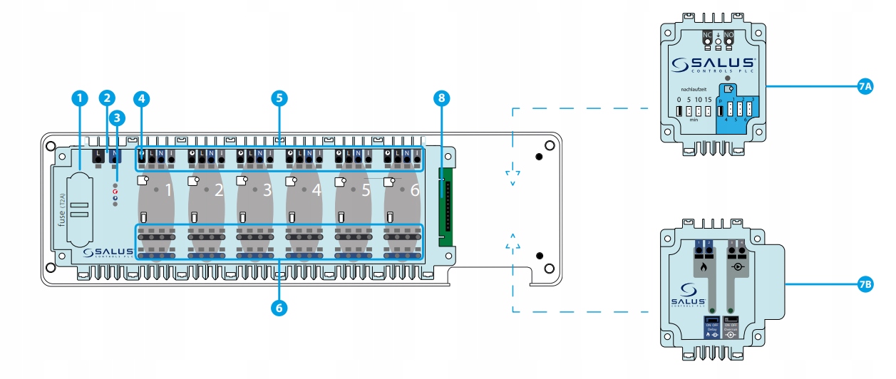 SALUS KL06 230V ПРОВОДОВА ПЛАНА УПРАВЛІННЯ ДЛЯ ПІДЛОГОВОГО БЛОКУ 6 ЗОН