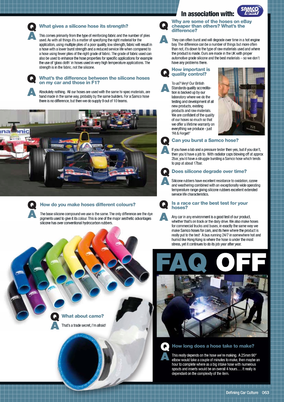 Samco Sport - світовий лідер у виробництві ефективних силіконових шлангів протягом 10 років, надаючи продукцію командам у F1, NASCAR, WRC та WSBK. Діапазон наборів змій та гоночних аксесуарів є другим.