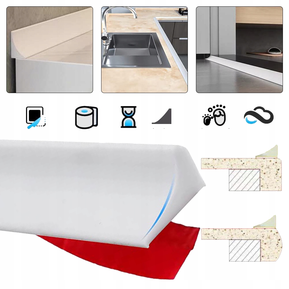 Вимірювання: Виміряйте довжину та ширину від Стільниця, в кутку, рекомендуємо вирізати її під кутом 45 градусів, а потім з’єднати дві частини, щоб забезпечити його стійкість. впливає на його зчеплення. Вода з печаткою для забезпечення тривалої та сильної адгезії.