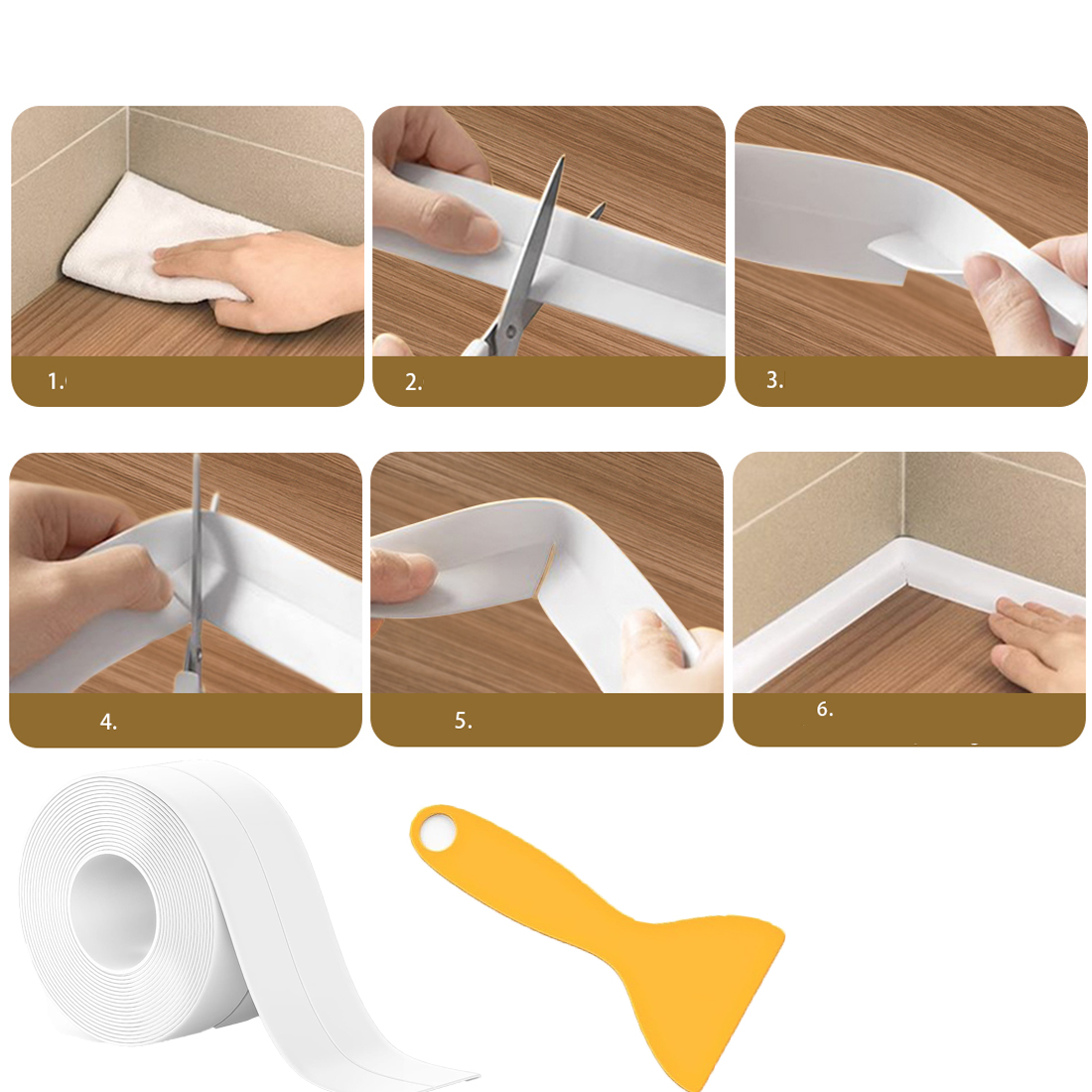 [Багатофункціональний дизайн] 🧴 Самоклеюча стрічка оснащена вигином у середній, який можна зігнути під прямим кутом 90 градусів. Завдяки цьому він легко пристосовується до вигинів і стиків, має різноманітне застосування та запобігає проникненню пилу, комах і масла в приховані куточки квартири.