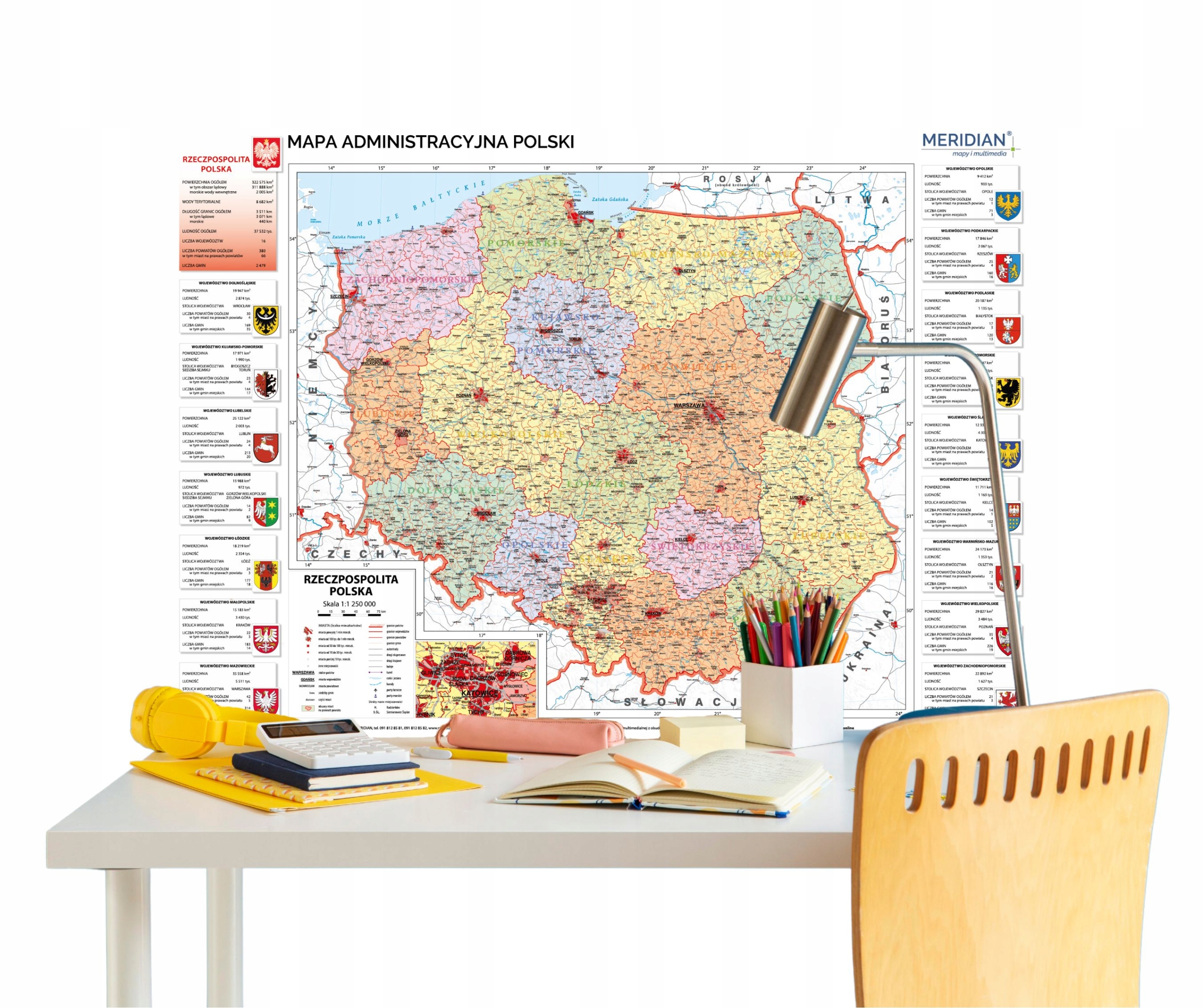 Samoprzylepna mapa administracyjna Polski 2025 MERIDIAN