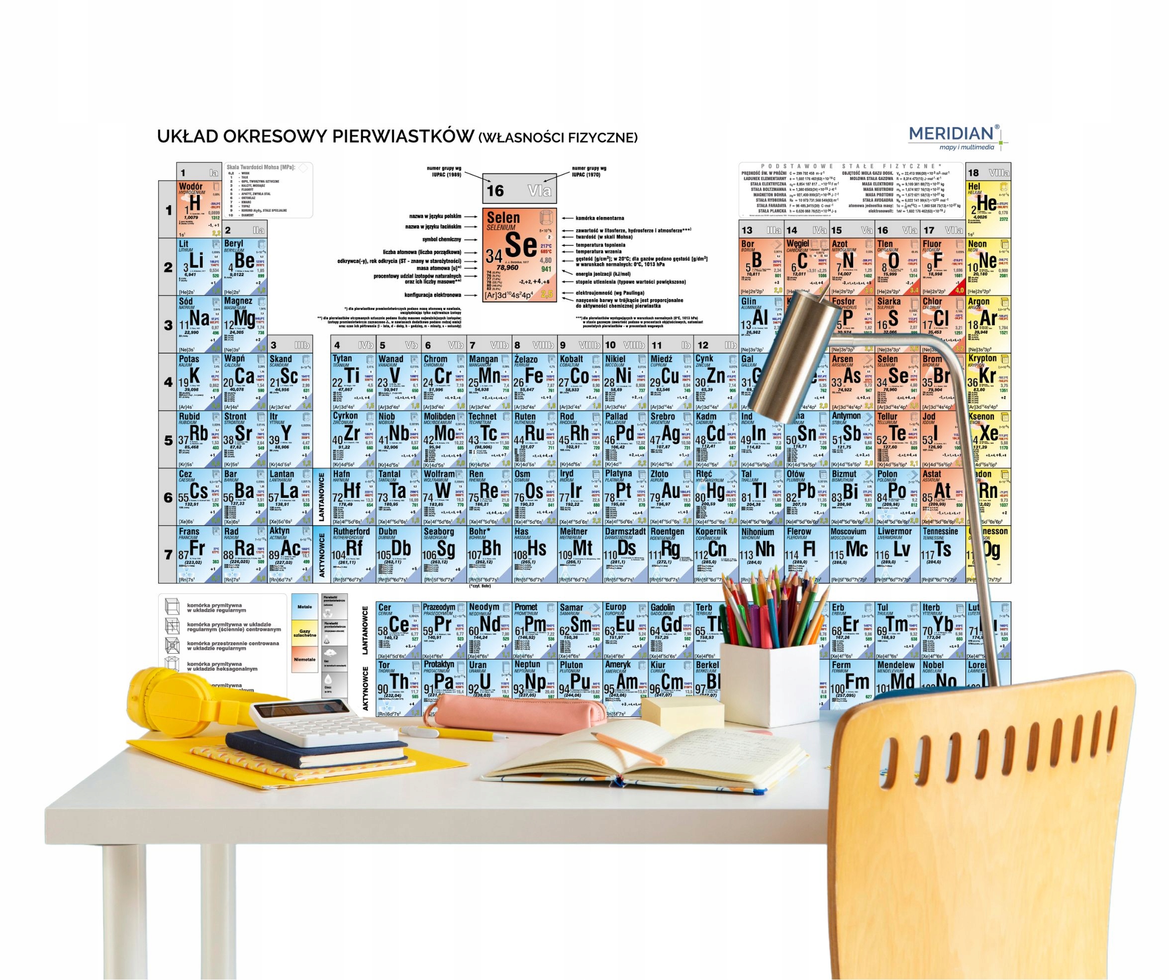 Samoprzylepny układ okresowy pierwiastków fizyczny 2025 MERIDIAN