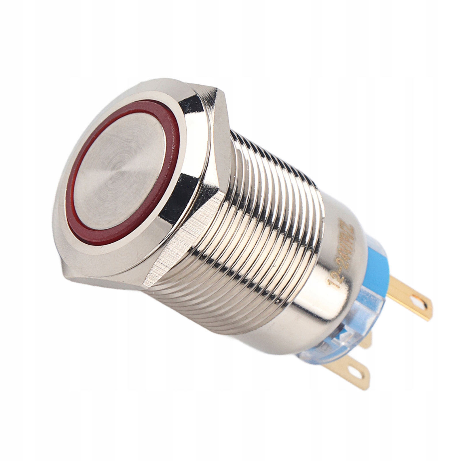 19 мм 12-24V водонепроникний нержавіючий самостійний вимикач, натиснутий червоний світлодіод