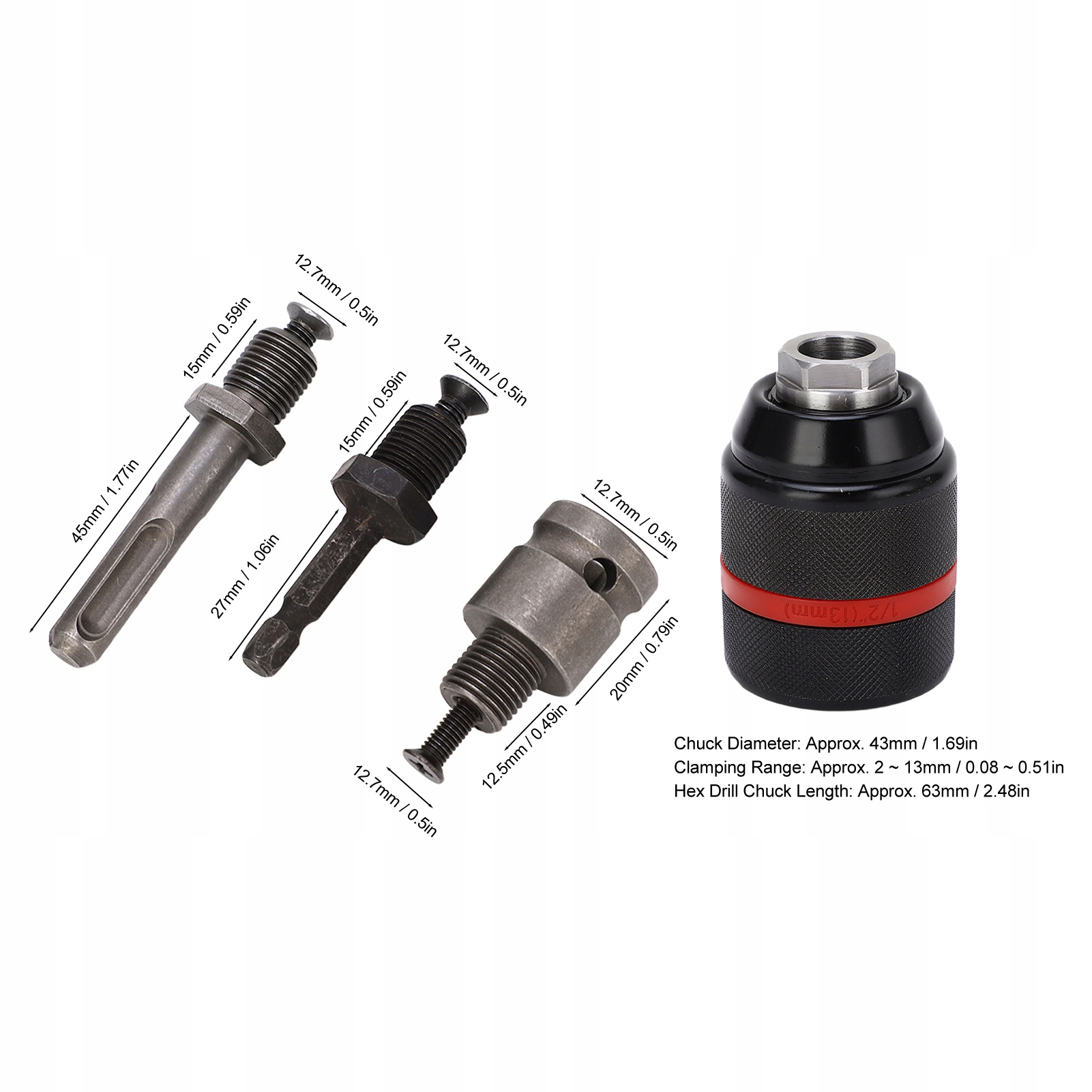 1. Корисний свердлильний патрон: цим патроном можна затискати різні свердла на свердлі, щоб краще задовольняти різні робочі потреби, ефективно та без зусиль.