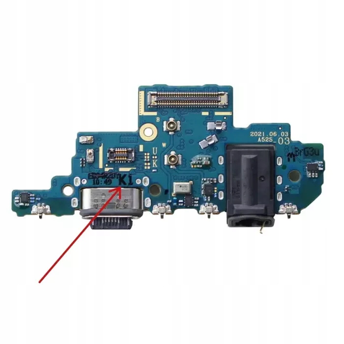 Увага! Модель Galaxy A52s 5G має два варіанти плат з роз'ємом для зарядки. Предметом цієї пропозиції є плитка з написом K1. Перш ніж купувати, переконайтеся, який у вас є у вашому пристрої!