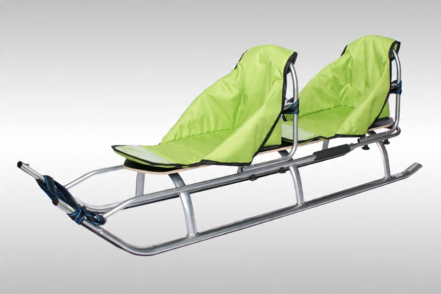 Санки дует, тандем двійні, великі, зі спинкою для дітей, суцільні, легкі лямки