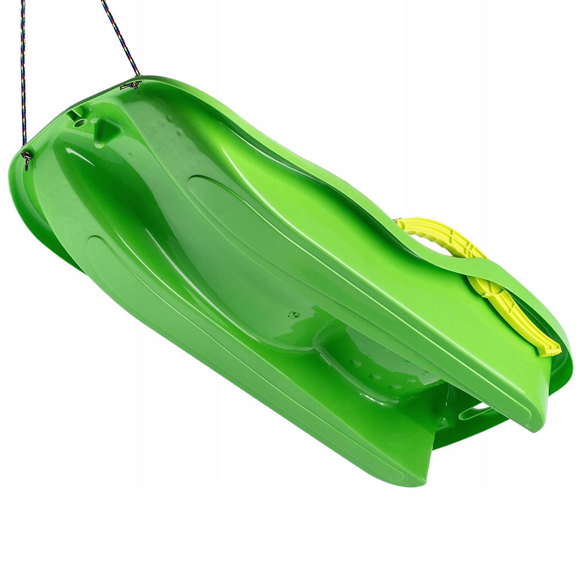 ❄️ЕФЕКТИВНИЙ - планер для спуску відрізняється не тільки сучасною формою, але й інтенсивним кольором . Завдяки цьому вона виглядає привабливо і забезпечує дитині кращу видимість на схилі. Він оснащений різнокольоровою мотузкою, яка полегшує тягання.