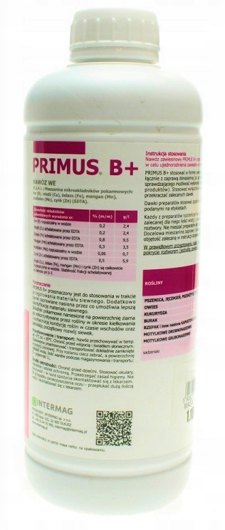 ПРИМУС Б+ – це модифіковане та збагачене суспензійне мінеральне добриво, що містить поживні речовини, які після внесення в насіння під час підготовки насіння стають легко доступними для формуючої рослини. .кореневу систему в період проростання та початкового розвитку рослини.