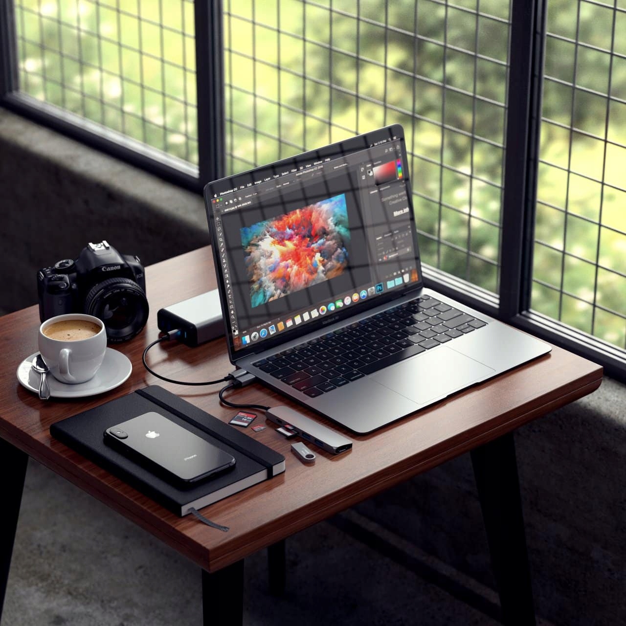 тонкий алюмінієвий тип-C multi-c sliminum multi-c satemi-multi-cort satechi адаптер V2 Невеликий, але потужний адаптер додає зчитувач мікро / SD-картки, доставку потужності USB-C (PD), 4K HDMI та USB 3.0-усі з одного порту USB-C. Тримайте його на столі або візьміть із собою в подорож, завдяки тонкому профілю, призначеному для максимальної портативності. Ефективне управління енергією та управління оптимальними швидкістю зарядки для швидкого постачання пристроїв типу С (максимальна потужність виходу: 60 Вт). Пристрій USB-C повинен підтримувати USB-C PD (2.0 або новіший). Підтримує UHS-1, SD / SDHC / SDXC. Просто підключіть кабель HDMI (2,0 або вище) з монітора до адаптера, щоб отримати відмінний відеосигнал до 4K при 60 Гц. Потрібен прямий HDMI для підключення до HDMI.