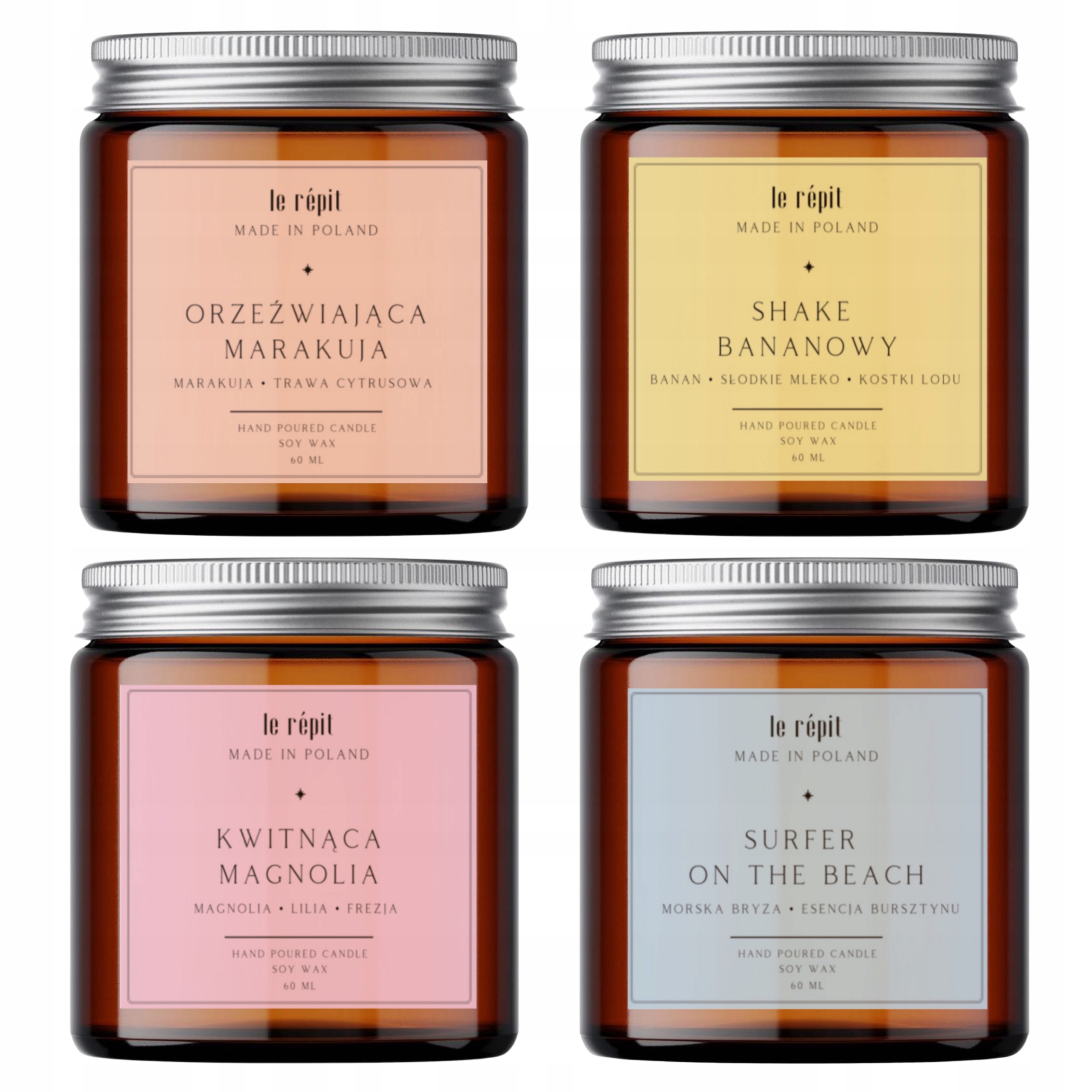 Ми представляємо перший варіант, який склав індивідуальний набір соєвих свічок le repit 4 x 60 мл. Ми надсилаємо товар у подарунковій упаковці. Будь ласка, вкажіть вибрані ароматизовані варіанти свічок у полі "скарга на покупку"):