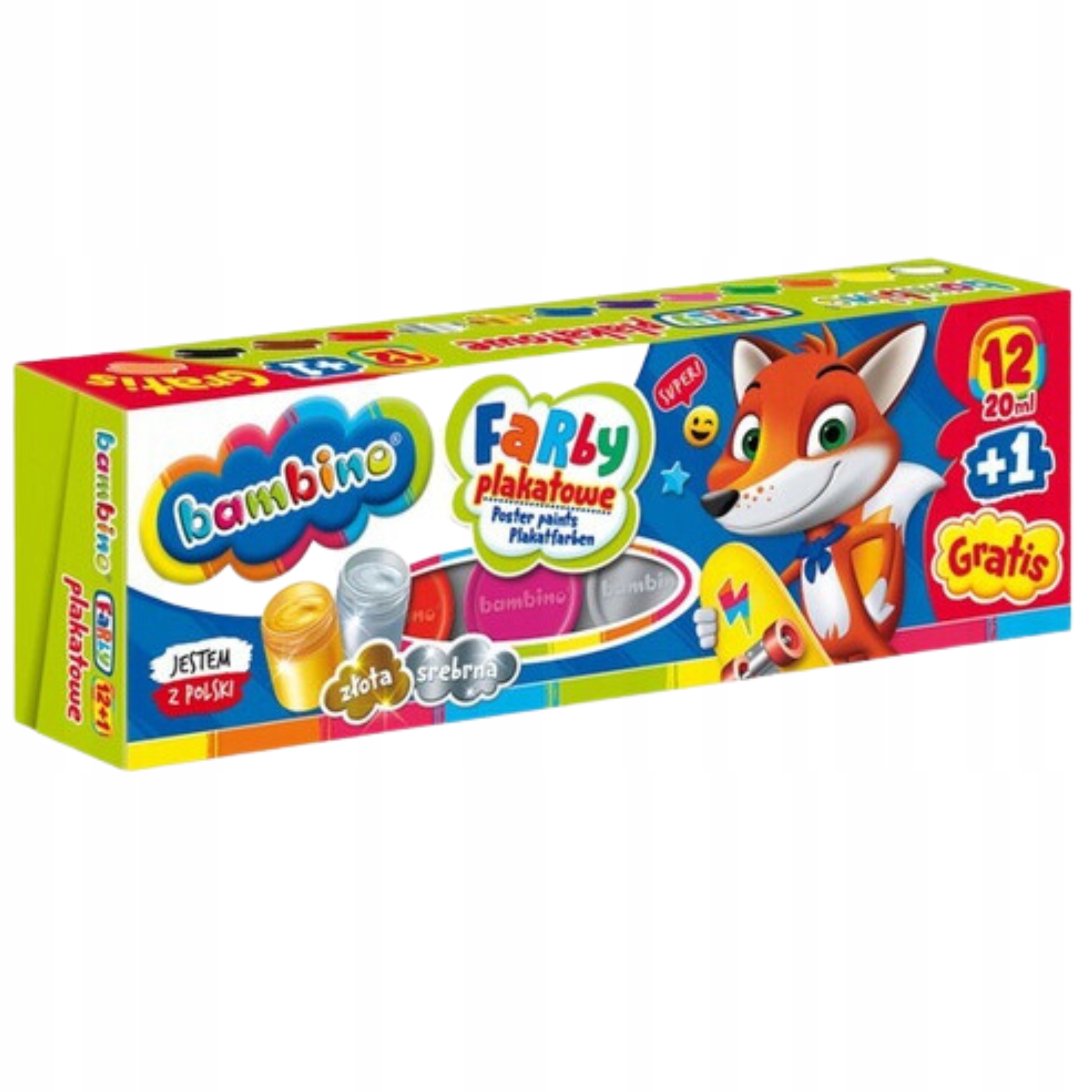 фарби плакатів Бамбіно - це фарби з чистими та насиченими кольорами. можна використовувати без використання води, вони не конденсують на землі . Після висихання живопис - m , інтенсивне, стійке до світла та стирання. Завдяки своїй відмінній якості вони ідеально розповсюджуються на папері, картоні, деревом, кераміці, камені.