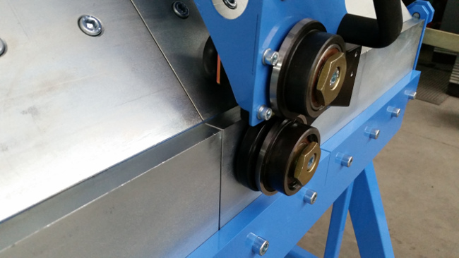 -a лавка обмежувач зігалучого листа в діапазоні 0-135 градусів (додаткове обладнання) - Повторне згинання листового металу в чотирьох положеннях з 0-135 градусів. Повторюваність зігнутого кутів буде отримана за допомогою ручного розташування обмежувача кута. Конструкція опору дозволяє їм повернути 180 ° та повернення до того ж місця. Дуже корисно для різання листового металу. Передні обмежувачі використовуються в повторюваних роботах. Вони багато разів зберігають однакову довжину нарізаного листового металу. Швидке та ретельне вимірювання вирізаного листового металу можна отримати за допомогою встановленого вимірювання вимірювання. Коробки з додатковими субтрайнами всередину. магніти, встановлені на нижньому проміні, "утримують" лоток для випічки в заданому положенні. Завдяки їм вузькі смуги листового металу не випадають з машини.