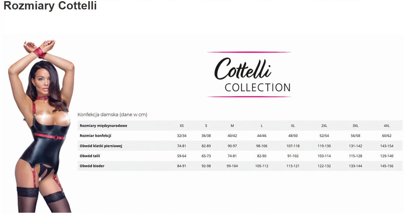 Бренд Cottelli – це німецька компанія, яка існує на ринку вже 15 років і є одним із найбільш продаваних брендів у своїй галузі. Кожен, хто стоїть за створенням білизни, з пристрастю підходить до своїх обов'язків. Це створює унікальний і стильний продукт, доступний в інтернет-магазинах. Якщо ви шукаєте щось пікантне, чим здивуєте свою другу половинку, ви потрапили в ідеальне місце. Відкрийте для себе інтимний світ Cottella.