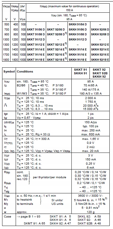 Semipack Semipack1 SKKT 91/06d Tyristor 600V 150A