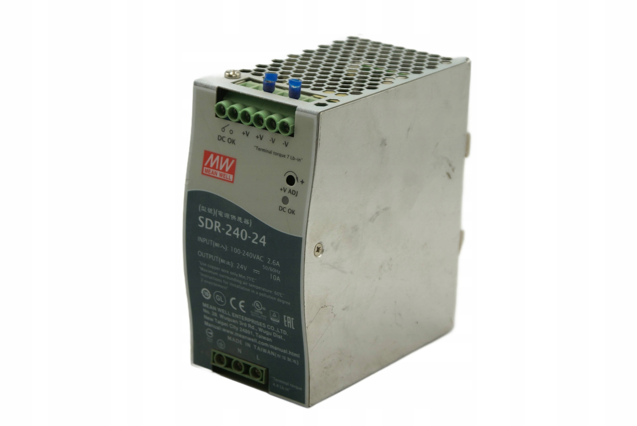 Середній колодязь SDR-240-24-це промисловий джерело живлення, встановлене на DIN-рейку, що пропонує потужність 240 Вт з вихідною напругою 24 В постійного струму та 10 струмом. Він характеризується високою ефективністю (до 94%) та вбудованою активною функцією PFC, що забезпечує коефіцієнт потужності вище 0,93.
