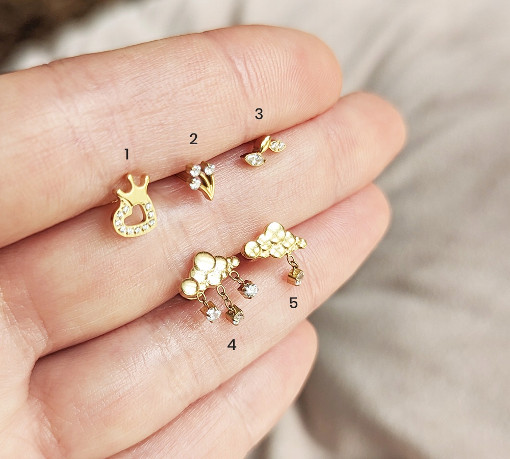 СЕРЕЖКА LABRET CLOUD GOLD HELIX ZIRCONIA TITANIUM 1.2/7