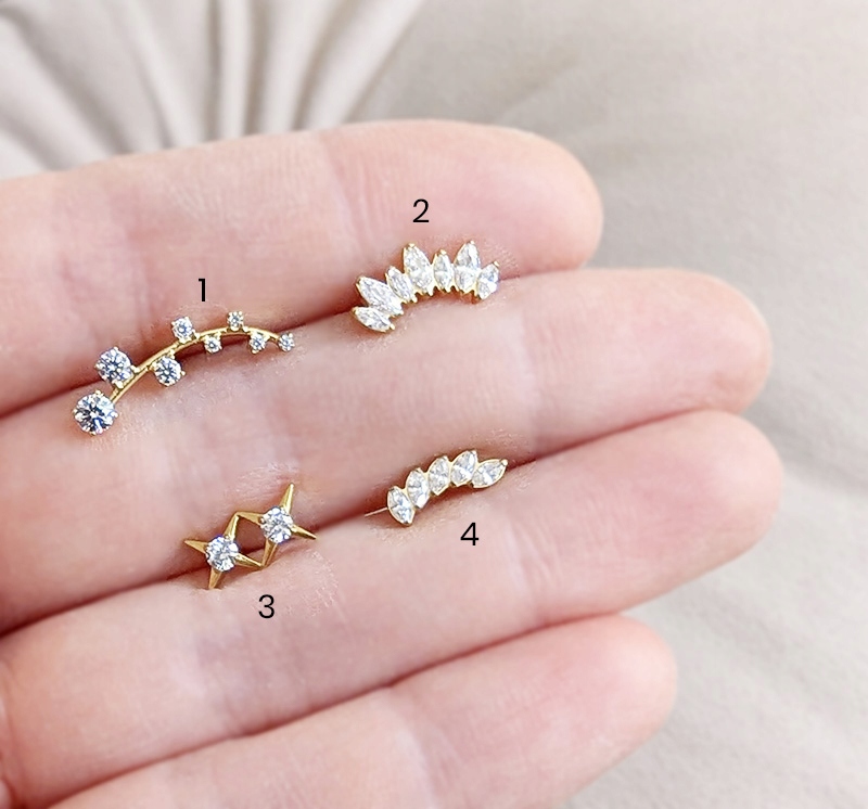 СЕРЕЖКА-ЛАБРЕТ З ТИТАНУ ЗОЛОТА СВІТРІ ВУХА З 5 ЦИРКОНІЯМИ 1,2/6/10