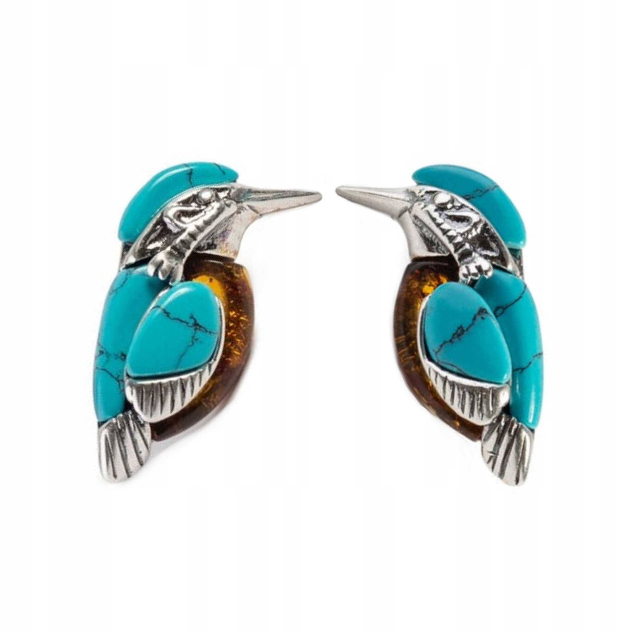 Ці прекрасні сережки зроблені з чудовою прецизійні сережки KINGSTER радують своїм дизайном і кольором. Виготовлені зі срібла 925 проби, коньячного БУРШТИНУ та блакитної реконструйованої БІРЮЗИ. KINGSTER — надзвичайно складний витвір ювелірного мистецтва, який точно не залишиться непоміченим. Сережки стануть чудовою прикрасою для любителів птахів та людей, які цінують унікальні прикраси.