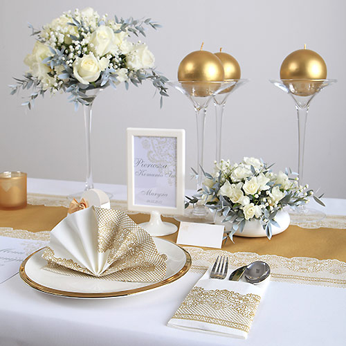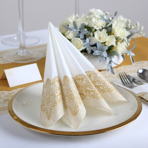 - 20 елегантних білих серветок, прикрашених золотим мереживом
